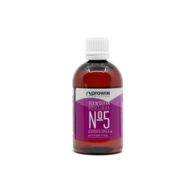 TEX N'CLEAN BOUTIQUE No. 5 GARDEN DREAM est idéal pour parfumer votre linge, en association avec les lessives proWIN. En tant que composant du proWIN Set pour le linge, ce produit sert de complément pour tous ceux qui aimeraient conférer un parfum exceptionnel à leur linge. Ce produit est sans parfums allergènes soumis à obligation de déclaration et facile à utiliser.